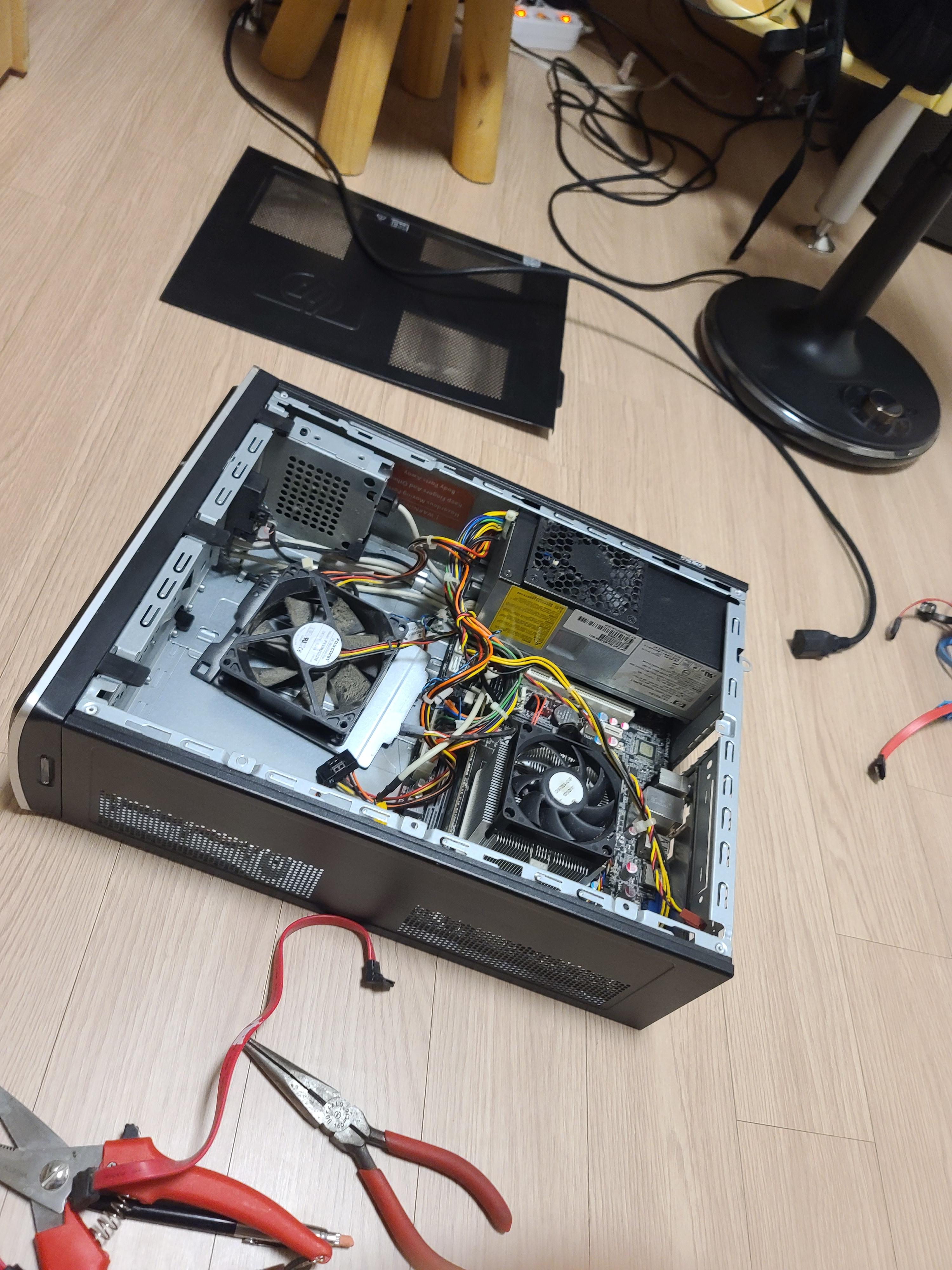먼저 메인보드하고 CPU 그리고 램 (그래픽카드는 내장그래픽으로 생략)이 필요하다. 필자는 AMD A10 5800k CPU와 ECS사의(솔직히 ecs를 좋아하지는 않는다)A55F2-M3보드를 사용하였다.램은 삼성 시금치 D3 10600 4G를 사용했다.5800K CPU는 4코어 4스레드의 성능을 자랑하지만 실제로는 인텔 I3 2120과 비슷한 성능을 낸다. 하지만 내장그래픽은 GT 730과 비슷한 성능을 내므로 롤컴퓨터를 제작하기에는 최적이다. CPU가 너무 오래되어 서멀 재도포를 해주었다.(ㅇㄴ 서멀 다써서 새로 사야한다)